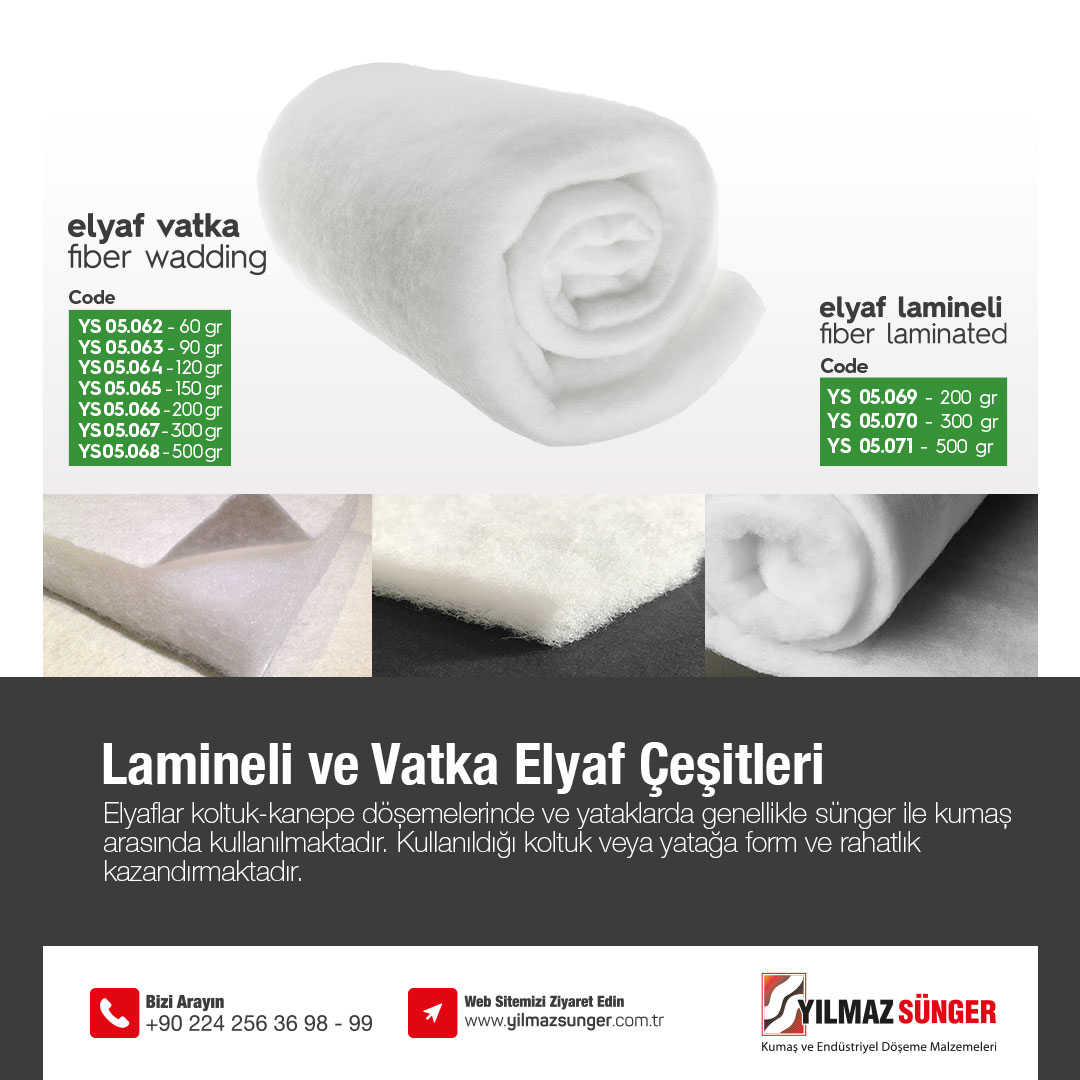 yilmaz sunger twitter પર lamineli ve vatka elyaf cesitleri elyaflar koltuk kanepe dosemelerinde ve yataklarda genellikle sunger ile kumas arasinda kullanilmaktadir kullanildigi koltuk veya yataga form ve rahatlik kazandirmaktadir elyaf